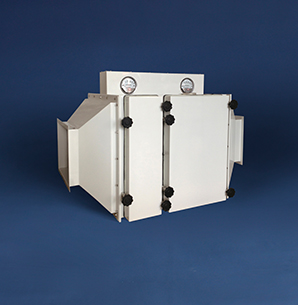 • 球盟会BIBO处理机组的每个HEPA过滤器单元都密封在机组内,每单元配有独立的小门,每个门都装有一套压制袋,所有过滤器的安装、更换、检测(脏的和新的)都通过袋子处理,更换过程方便快捷,过滤单元完全不与外界空气接触,确保维护人员在更换过滤器时不会直接接触不安全的物质。作为一种安全的装置,该机组可满足处理危险有毒生物、放射或致癌物质的能力。
