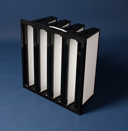 W”型(V-BANK)玻璃纤维过滤器——CFGW,采用V型结构设计,增大通风量的同时提高了容尘量,提高了滤网使用寿命;空气过滤效率涵盖F7-H14中、高两个过滤等级;因过滤效率稳定可靠、适用性强、使用寿命长等优点,广泛应用在各类型的送风系统中,承担着主过滤器的重任。