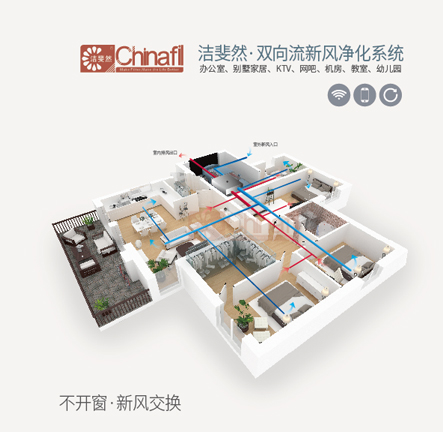 球盟会新一代X6-AIR双向流新风系统主机,适用于通风欠佳的楼宇办公室、KTV、网吧及对空气品质有更高要求的别墅家居、幼儿园等场所。尤其是安装有地暖的屋宇,通过新风主机动力将室外新鲜空气引入室内,同时将室内的污浊空气排出室外。在系统运作时,新风与排风在热能回收中心进行热能交换,大幅度降低了室内新风温度处理的能耗。系统还配备先进的WiFi远程物联控制器,可实现远程监控管理。
